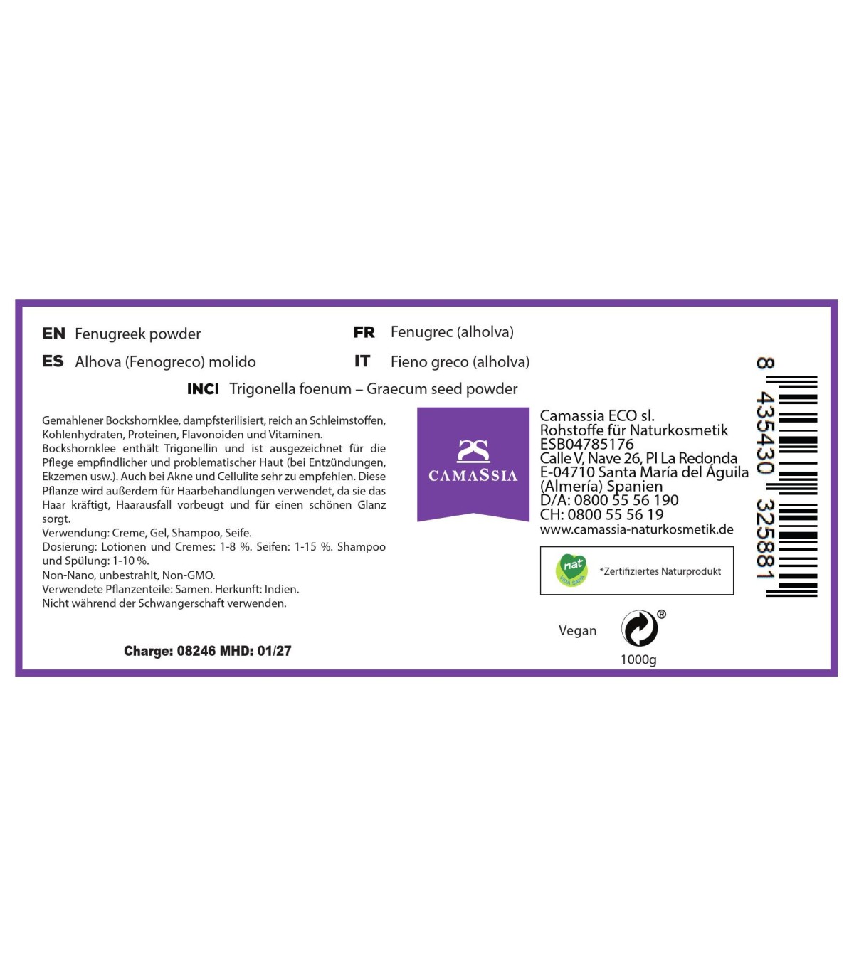 El polvo de Alholva, conocido como Fenogreco, “Trigonella foenum-graecum” es una planta ayurvédica que procede de la familia de las leguminosas, y cuyas semillas son extraídas para usar sus propiedades en preparados cosméticos.