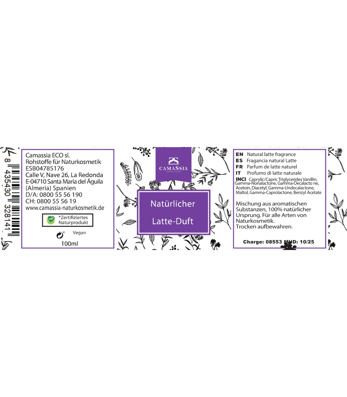Der natürliche Latte-Duft kombiniert aromatische Inhaltsstoffe, die in allen Arten von Naturkosmetikprodukten verwendet werden können.