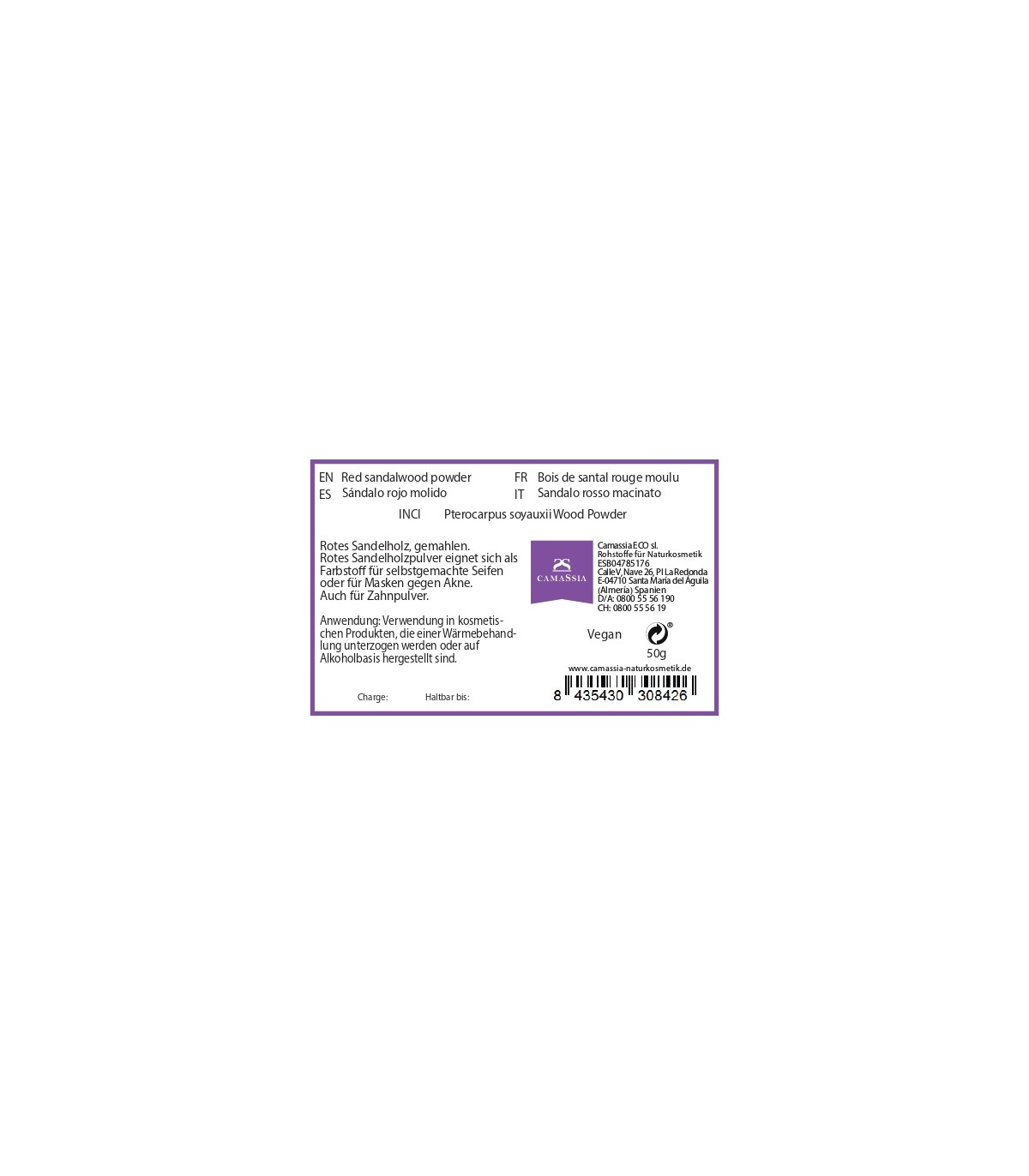 INCI: Pterocarpus Soyauxii Wood Powder