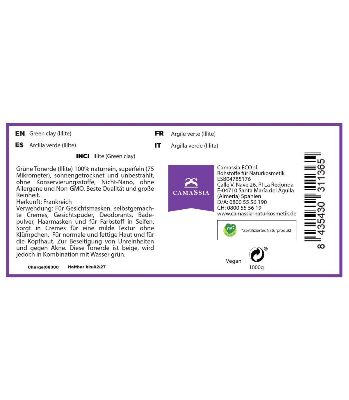 Tonerde ist eine natürliche Quelle für Mineralien und Spurenelemente, die für die Haut sehr vorteilhaft sind. Unsere grüne Tonerde "Illite" zeichnet sich durch große Reinheit und ausgezeichnete Qualität aus. Sie eignet sich deshalb hervorragend für selbstgemachte Masken, Peelings oder Gesichtsreinigungsgele.