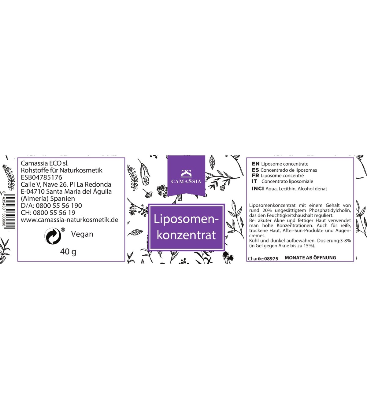 Wenn du reife Haut tiefgehend pflegen möchtest, ist dieses Liposomenkonzentrat für Naturkosmetik ausgezeichnet. Liposomen sind kleine Hohlkörper, deren Außenschicht sich aus Phosphatidylcholin (ein- oder mehrschichtig) zusammensetzt. Dieser Wirkstoff ist wasserlöslich. Darin können Vitamine oder Wirkstoffe gegen Falten eingekapselt werden, damit diese in tiefere Hautschichten transportiert werden können.