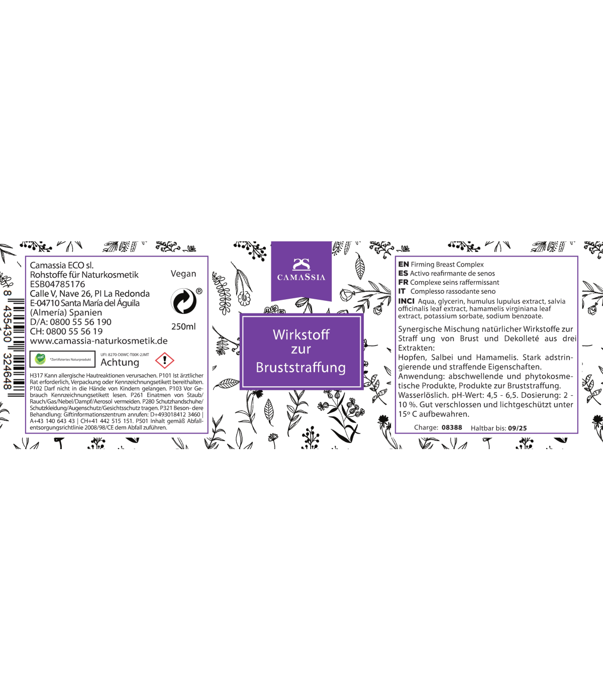 Die Haut der Brüste ist sehr dünn und kann aus verschiedenen Gründen erschlaffen. Möchtest du wissen, wie du die Elastizität der Haut in diesem Bereich erhalten kannst? Der Wirkstoff zur Bruststraffung, den du in unserem Online-Shop Camassia Naturkosmetik zum besten Preis findest, kann dir in diesem Fall helfen. Dieses Produkt ist eine synergistische Mischung aus drei Extrakten: Hopfen und Salbei, die östrogene Eigenschaften haben, sowie Hamamelis, das adstringierend und straffend wirkt. Dieser Komplex ist reich an natürlichen Inhaltsstoffen, die sorgfältig ausgewählt wurden, um die Haut der Brust zu straffen.
