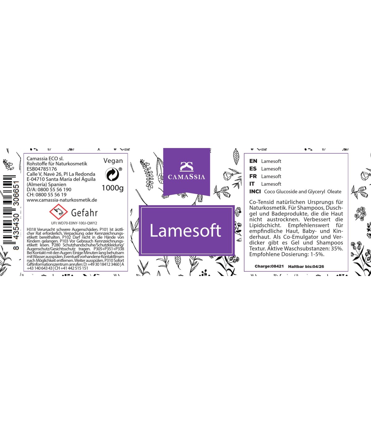 Lamesoft® wird als Co-Tensid verwendet und zeichnet sich durch rückfettende Eigenschafen aus, die in Shampoo, Duschgel und anderen Badeprodukten für trockene Haut sehr vorteilhaft sind.