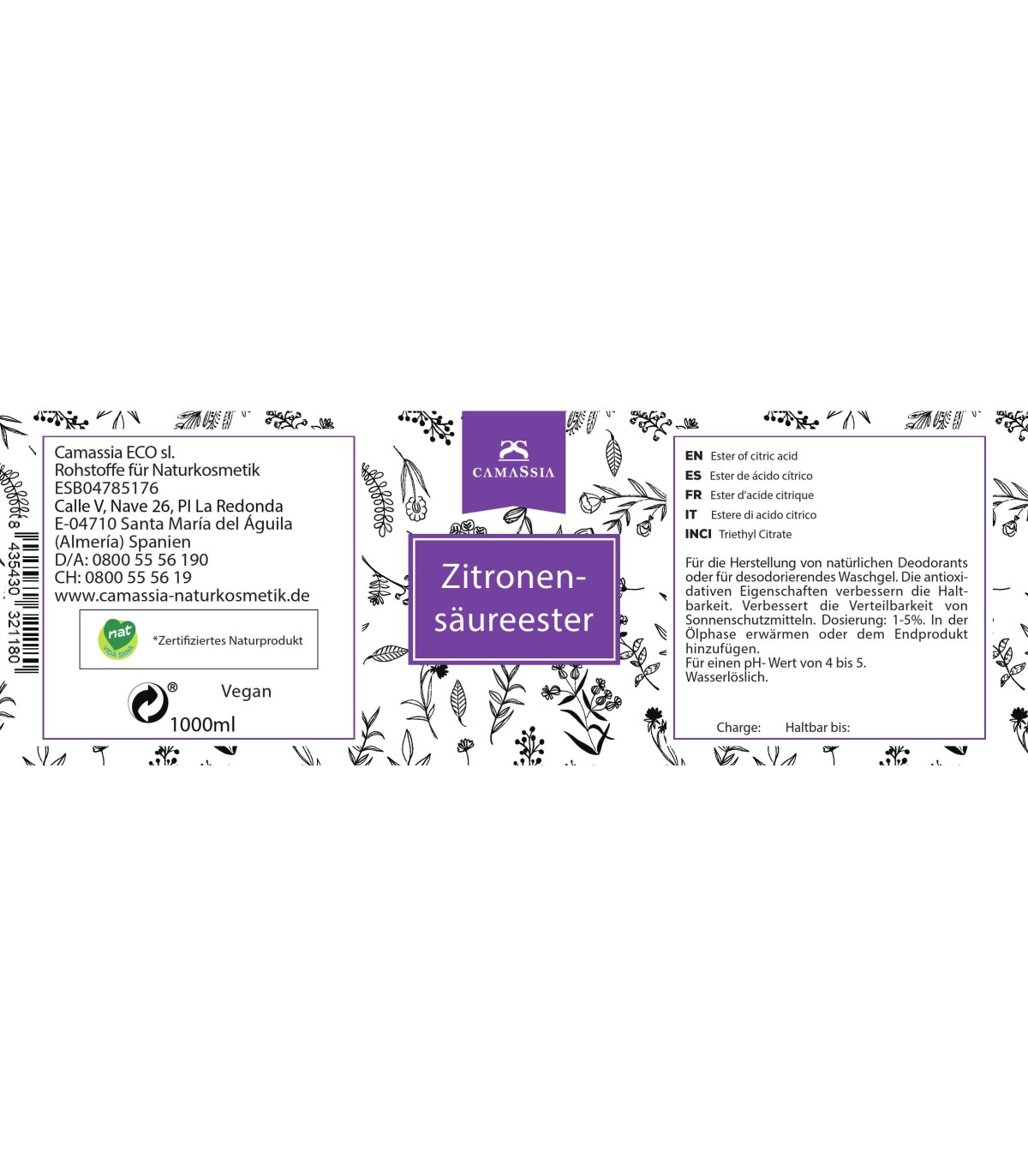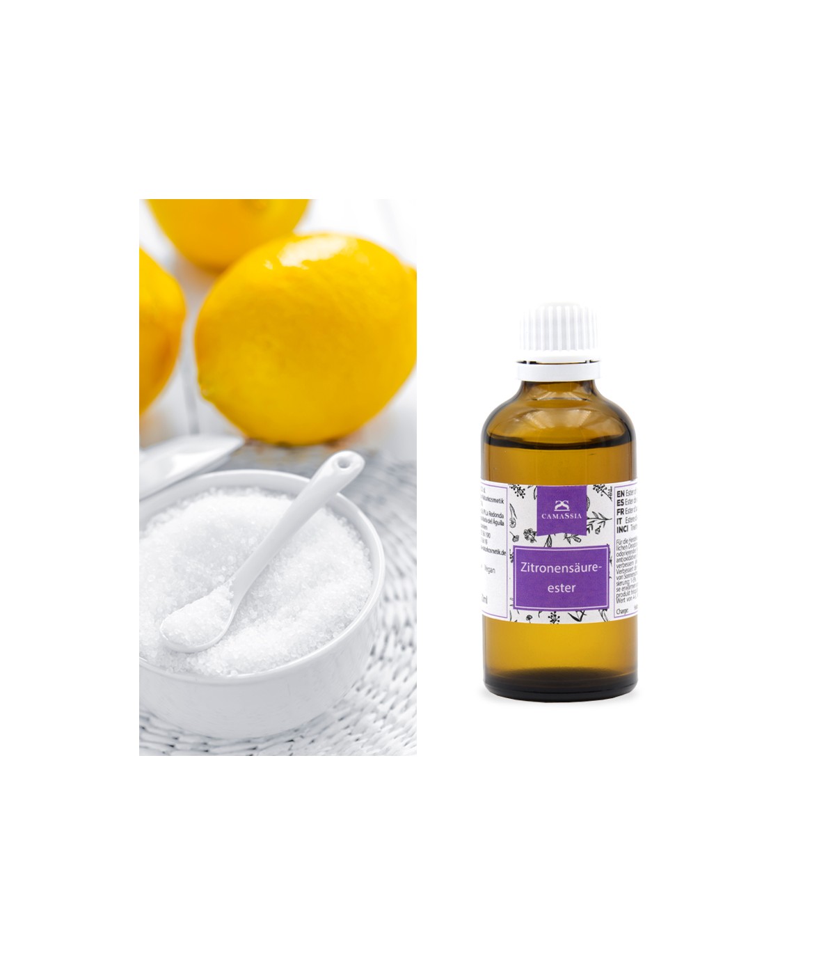 Zitronensäureester (Triethylcitrat) ist ein Zusatz, der häufig für selbstgemachtes Deodorant oder desodorierende Waschlotionen verwendet wird. Diese Substanz ist transparent und geruchlos. Sie entsteht durch die Veresterung von Ethanol mit Zitronensäure und hemmt die enzymatische Dekomposition von Schweiß und in der Folge auch die Bildung unangenehmer Gerüche.